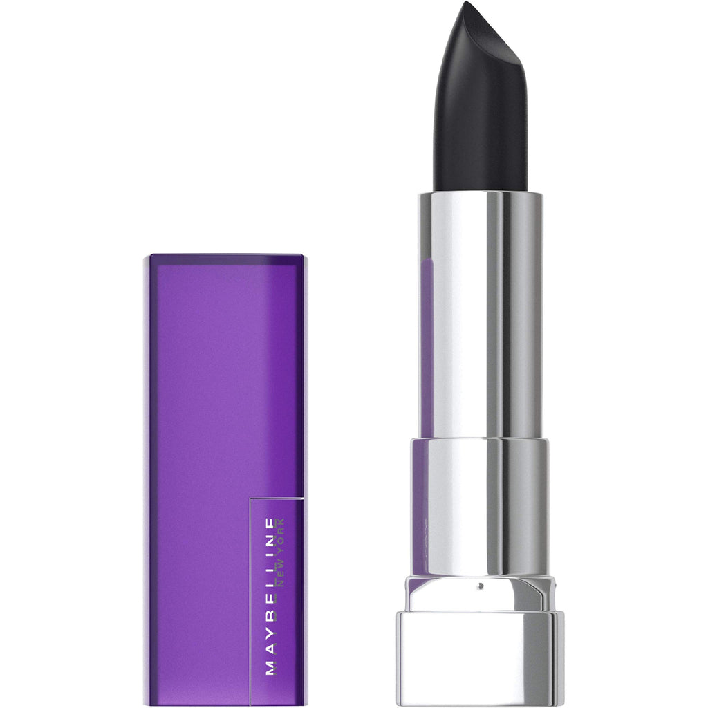 Maybelline Color Sensational Lipstick, Lip Makeup, Matte Finish, Hydrating Lipstick, Nude, Pink, Red, Plum Lip Color, Pitch Black, 0.15 oz; (Packaging May Vary)