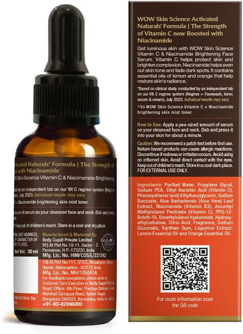 Get luminous, youthful skin with WOW Skin Science 20% Vitamin C Face Serum. It delivers the benefits of pure vitamin C, witch hazel and hyaluronic acid. The serum helps to hydrate and repair skin; smooth out fine lines; even out complexion and improve skin luminosity. Active vitamin C helps to repair skin damage caused due to environmental exposure. It neutralizes free radicals that cause damage to the skin.