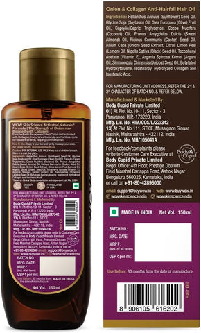 • Onion hair oil by WOW Skin Science is powered with Onion Black Seed Oil extract blended with Almond, Castor, Jojoba, Olive & Coconut Oils.