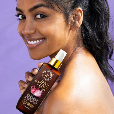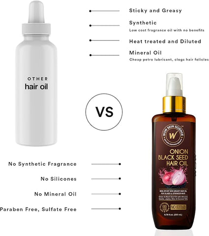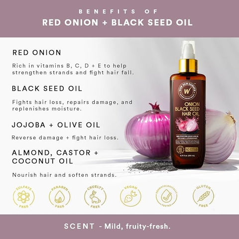 - Powered with onion black seed oil blended with almond, castor, jojoba, olive & coconut oils