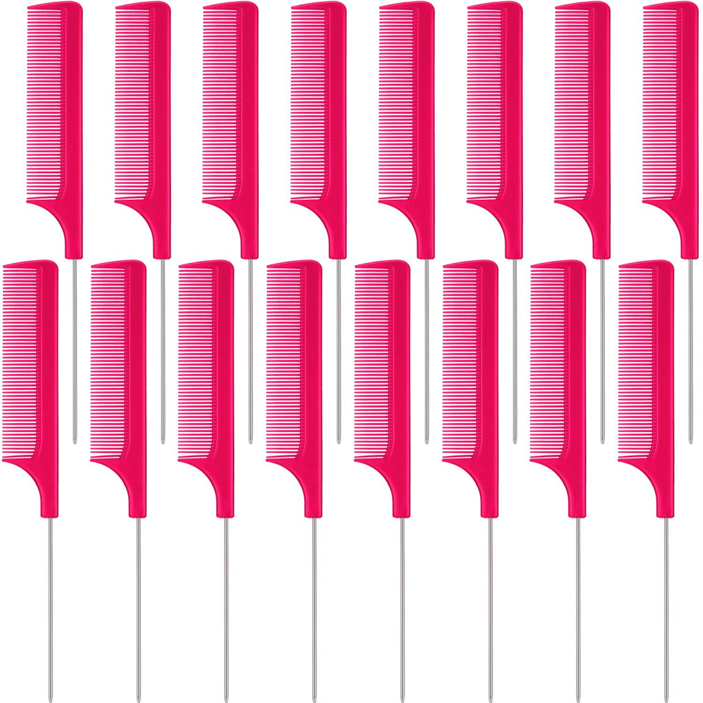16 Pieces Metal Rat Tail Combs Pintail Hair Combs Salon Fiber Back Combs for Women Girls Hair Styling at Home Salon (Rose Red)