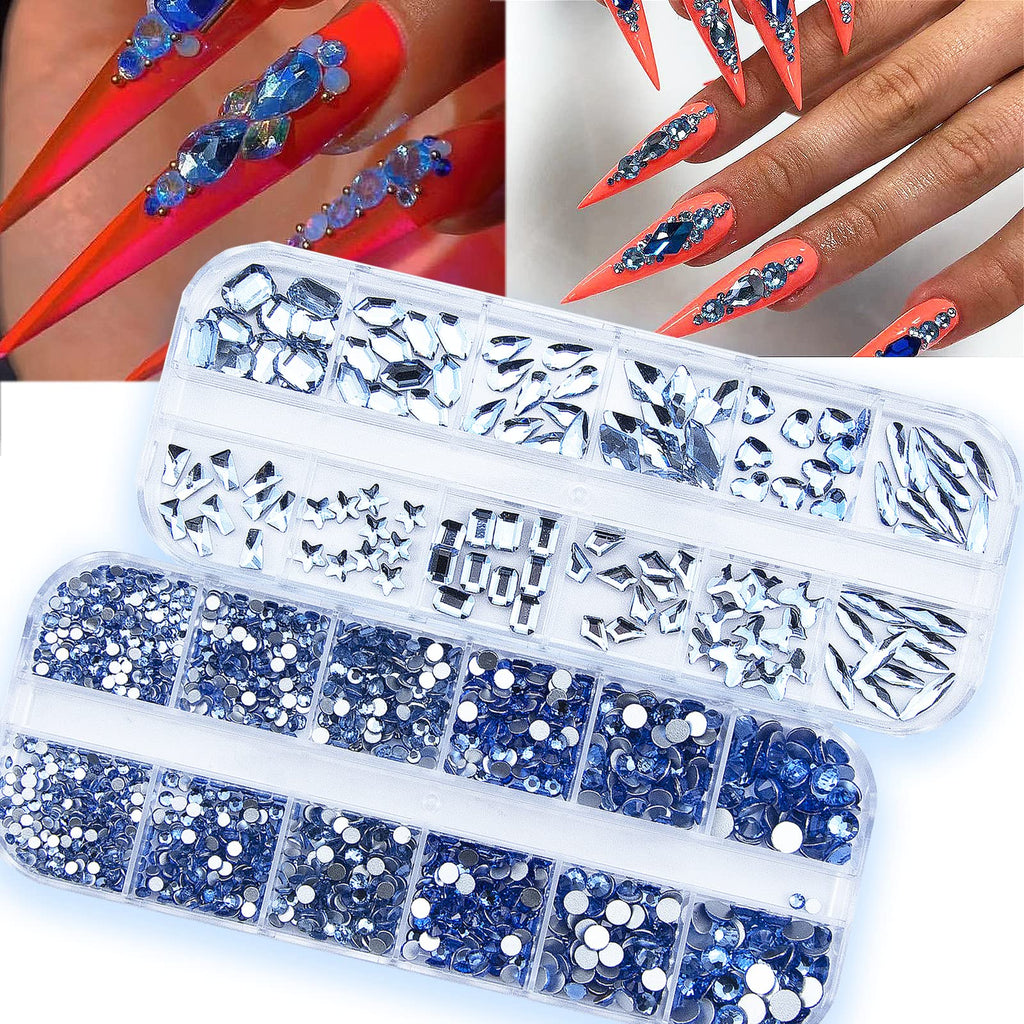1620Pcs Light Blue Nail Rhinestones Crystals Glass Gems Stones Multi Shapes Sizes Light Blue Round Beads Flatback Rhinestones for Nail DIY Crafts Clothes Shoes Jewelry