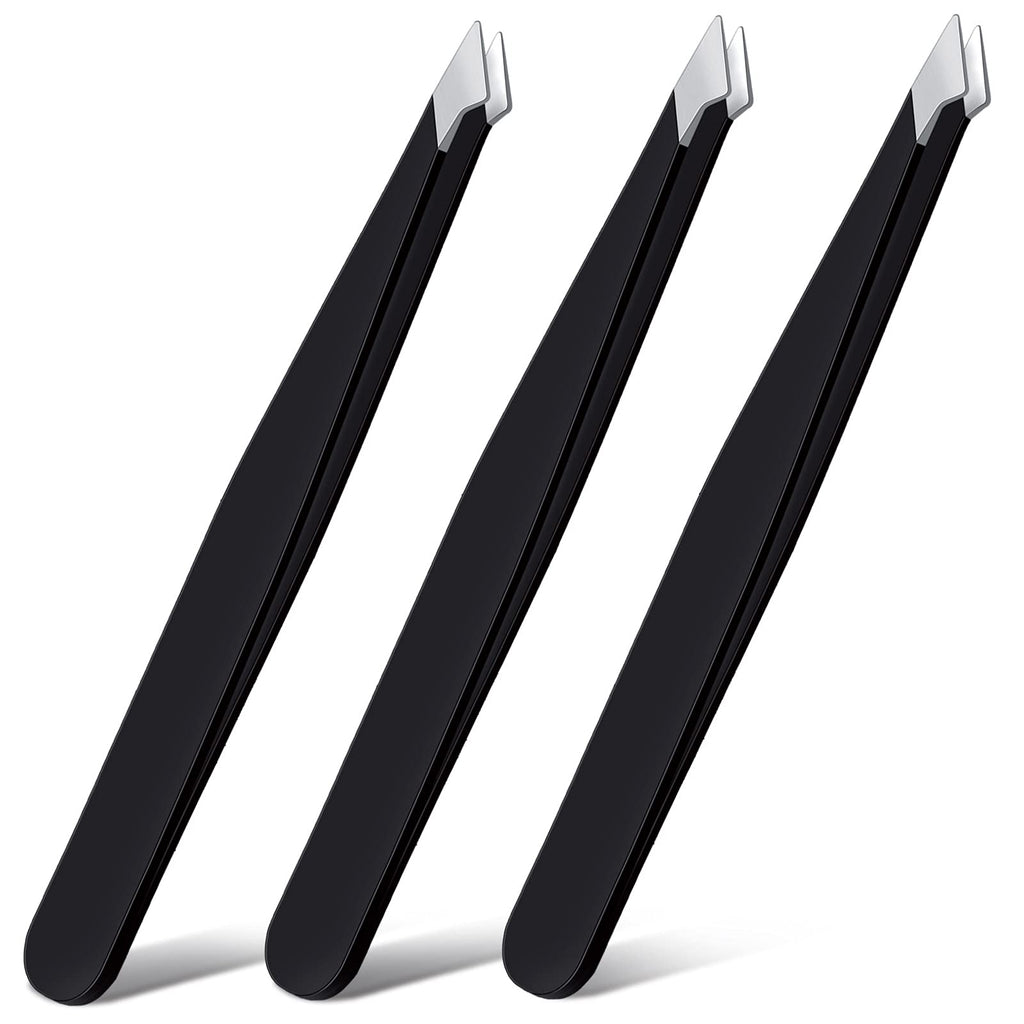 3 Pieces Eyebrow Tweezers Stainless Steel Pointed Tip Slant Tweezers Pointed Hair Removal Tweezers Precision Tweezers Splinter Plucking and Ingrown Hair Removal for Facial Hair (Black)