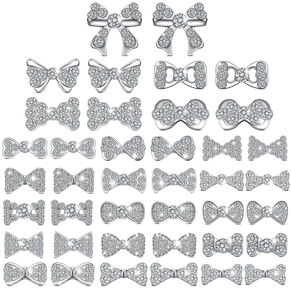 40 Pieces 3D Bow Nail Charms Bow Tie Design Nail Art Slices Rhinestone Alloy Bow Nail Art Decals Bow Nail Art Decoration for Women Girls DIY Nail Art 20 Styles