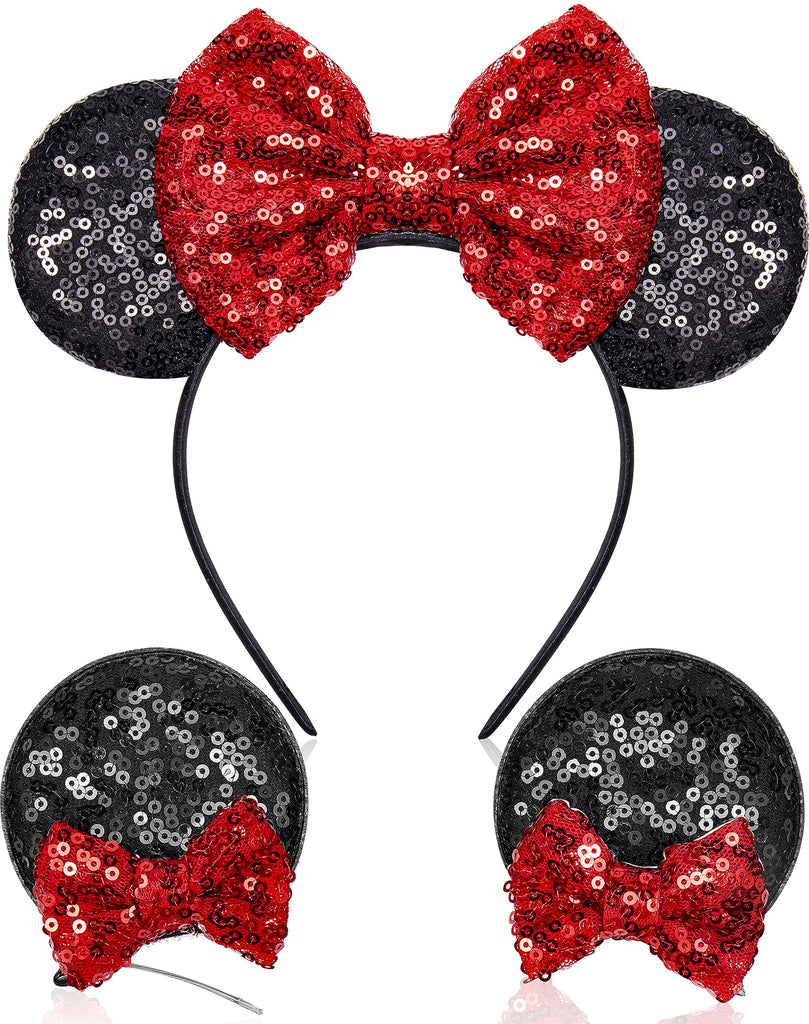 Akkya Mouse Ears Headband Hair Clips Accessories for Women Girl Kid Adult Birthday Party Princess Park Costume Mini Bow Present Black
