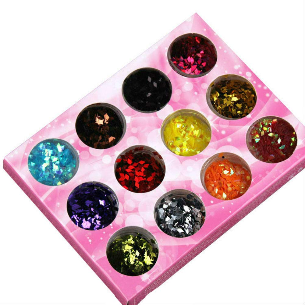 AKOAK 12 Colors Laster Diamond Nail Art Sequins Acrylic Rhomb Nail Flakes Glitter 3D Rhombus Shape Nail Glitter DIY Tips