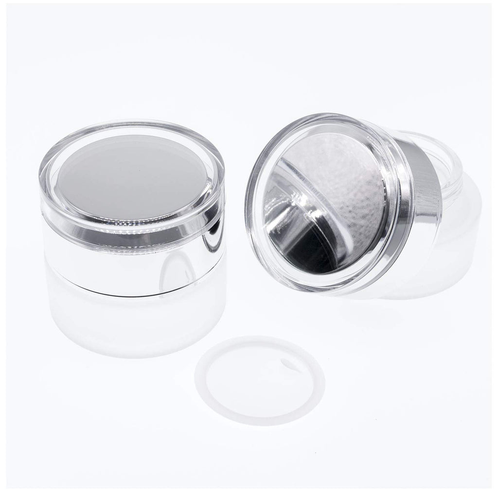 AKOAK 2 Pcs Refillable Frosted Glass Cosmetic Cream Jar Bottle Container,High-end Separate Bottles for Cosmetics with Silver Shiny Lid,Capacity 30g/1oz
