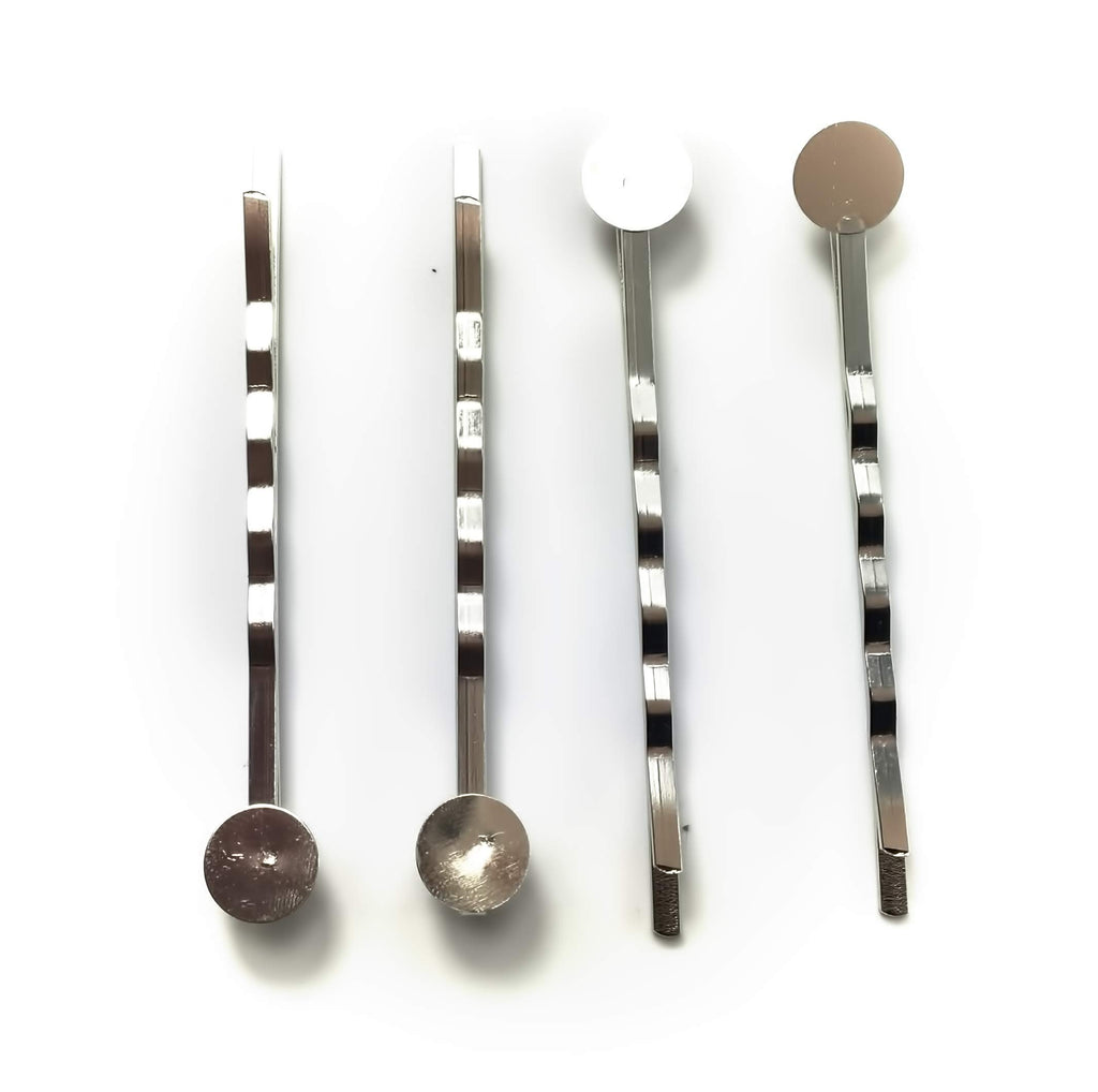ALL in ONE 50pcs 55mm Silver Tone Bobby Pins Hair Clips with Glue On Flat Pads for DIY