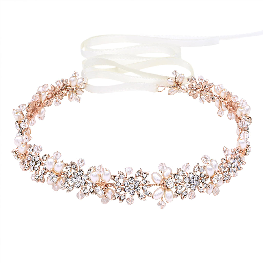 Ammei Bridal Headpiece Flower Design Wedding Headband Bridal Hair Accessories (Rose Gold)