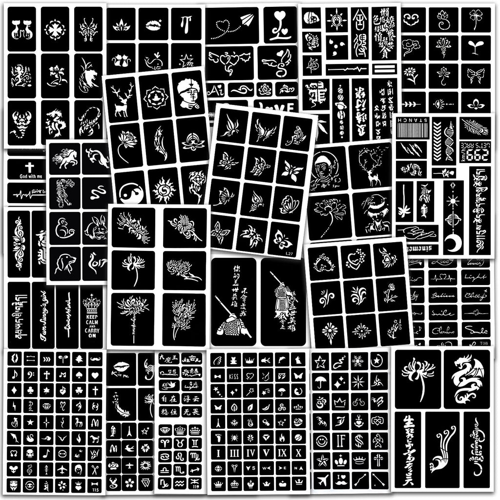 Aresvns 550+ PCS Temporary Tattoo Stencils with Body Painting Pen,24 Sheets Henna Tattoo Templates Reusable for Women,Glitter Tattoo Stencils,Airbrush Tattoo Stencils,Body Art Template Christmas Gift