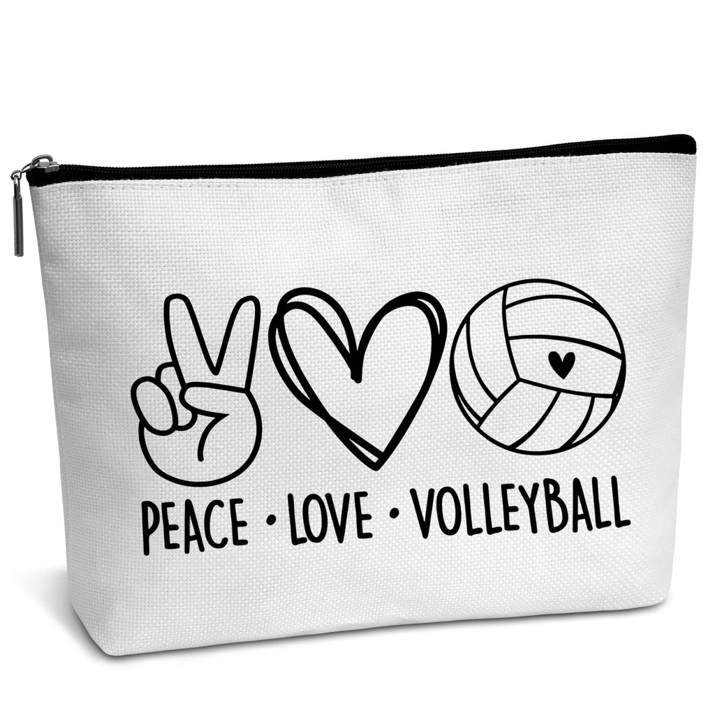 AWSICE Volleyball Cosmetic Bag, Peace Love Volleyball Gifts for Dentisit, Birthday Gifts for Women Sister Her Coach Girl Teens-B26, White