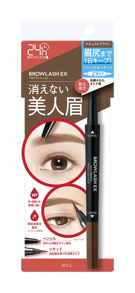 B&C Laboratories Brow-lash Ex Water Strong Liquid Eyebrow Liquid Pencil will brighten up your eyes and it will not smudge for up to 24 hours. The special part about this pen & pencil is that it has two heads and one for the inner eyebrow and the other head is for the outer eyebrow. The eyeliner tip of B & C Brow-lash Ex Water Strong Liner is well-pointed and allows you to draw a define line on your eyelids easily without any hassle or untidiness. Perfectly great for makeup beginners. Color:Natural Brown 21g Made in Japan.