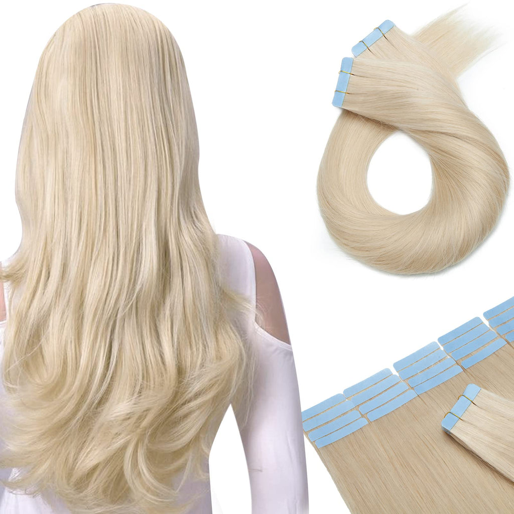 Benehair Platinum Blonde Tape in Hair Extensions 100g 40pcs 16 inch Long Remy Human Hair Highlighted Straight Seamless Invisible Skin Weft Invisible Double Sided Tape #60 100g