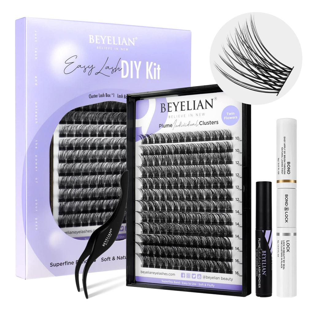 BEYELIAN Lash Extension Kit Cluster Lashes Kit with 168 Pcs Lash Clusters, Clusters Eyelash Applicator Tool, Cluster Lashes Bond and Seal Super Hold, Clusters Lash Glue Remover Easy to Apply at Home