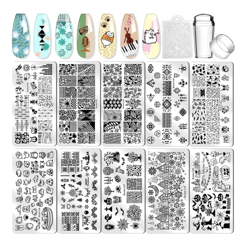 Biutee Nail Stamping Plates 10pcs Templates with stamper Nail Art Plates set Christmas halloween animal flower design