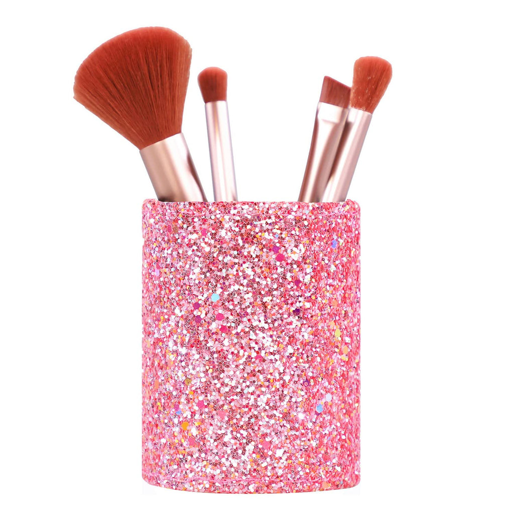 Bling Sequins Makeup Brush Holder, Cute Glitter Vanity Decor Organizer, Cosmetic Brushes Comb Pen Storage Holders Cup (Pink)