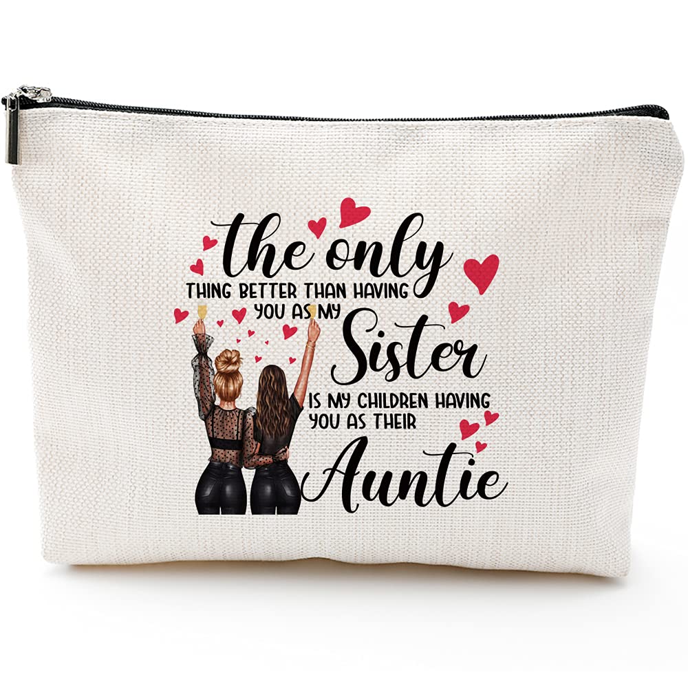 Blue Leaves Auntie Mothers Day Gifts Aunt Gifts from Niece Nephew Gifts for Aunts Birthday, Christmas, Appreciation Makeup Bag-Only Thing Better Than Having You As My Sister AS Auntie