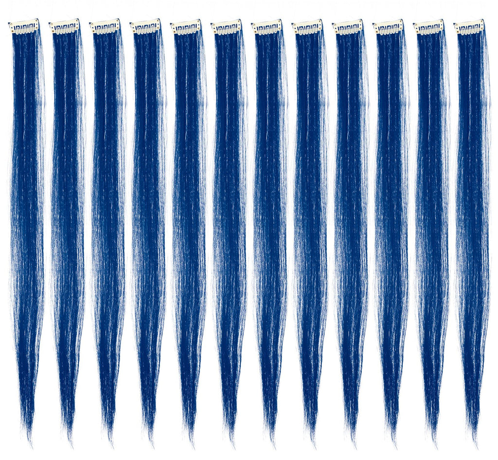 Blue : SWACC 12 Pcs Straight One Color Party Highlights Clip on in Hair Extensions Colored Hair Streak Synthetic Hairpieces (Blue)