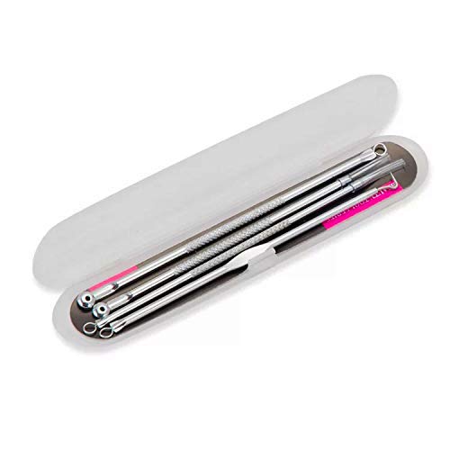 BNP Silver 4Pcs Blackhead Remover Pimple Comedone Extractor Acne Removal Kit - for Blemish, Whitehead Popping, Zit Removing Nose Face Skin with Case