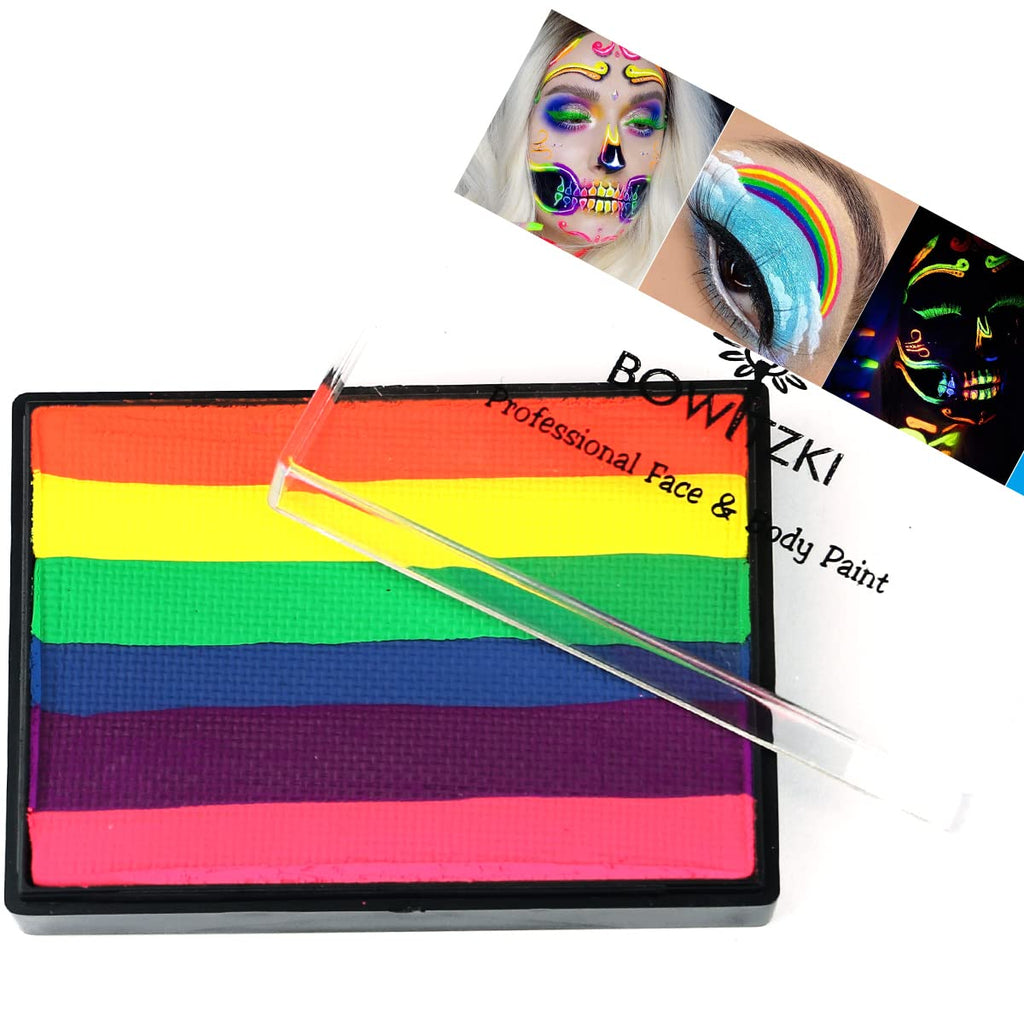 Bowitzki Garden Split Cake with Neon Green,Neon Pastel Green,Neon Bright Teal,Neon Teal,Neon Purple and Neon Pastel Purple. Size:3.1? x 2? x 0.5? ?Here is a little tip:Before paint you could smear some body lotion on your skin,that would make the paints very easy to remove.?