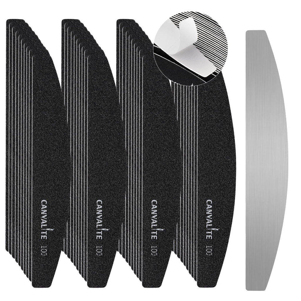 Canvalite 40 PCS Nail File Professional Reusable Peel and Stick Nail Files Replaceable Emery Boards 100 Grit Fingernail Files Manicure Tools for Home and Salon Use