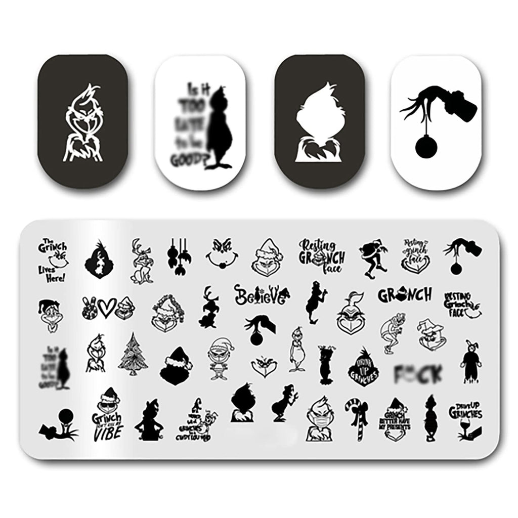 Christmas Nail Stamping Plate Green Haired Monster Nails Stamping Kit Winter Holiday Nail Stamping Plate Xmas Nail Stamper Kit for Women Girls DIY Salon