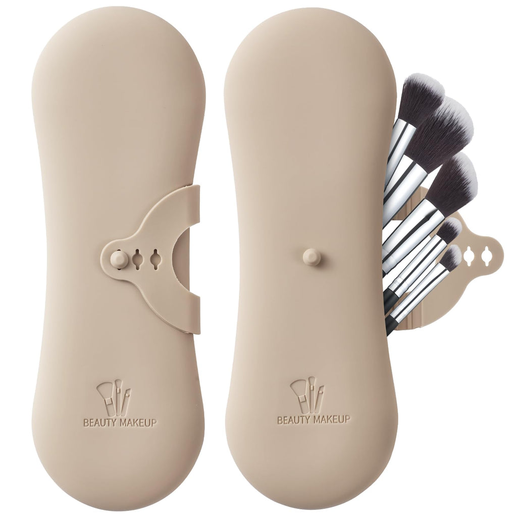 coclothy Travel Makeup Brush Holder, Anti-fall Out Silicone Portable Cosmetic Face Brushes Holder, Soft Travel Cosmetic Bag for Travel, Travel Makeup Brush Case, Khaki