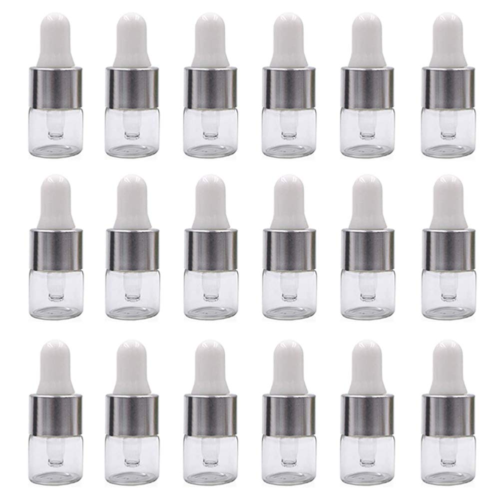 ConStore 50pcs Clear Glass Dropper Bottles Mini Essential Oil Vials with Glass Eye Dropper Empty Cosmetic Lotion Sample Bottles Refillable DIY Cosmetic Container Liquid Perfume (1ml)