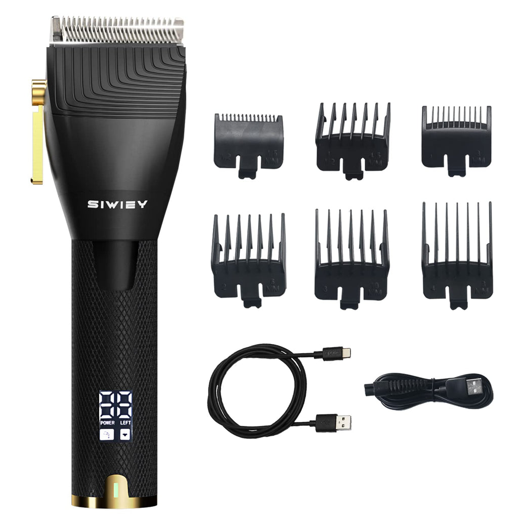 Cordless Hair Clippers, SIWIEY Professional Barber Clippers with LCD Display, 6 Guide Combs, Dual Port Charging Clippers for Men Rechargeable Clippers for Hair Cutting