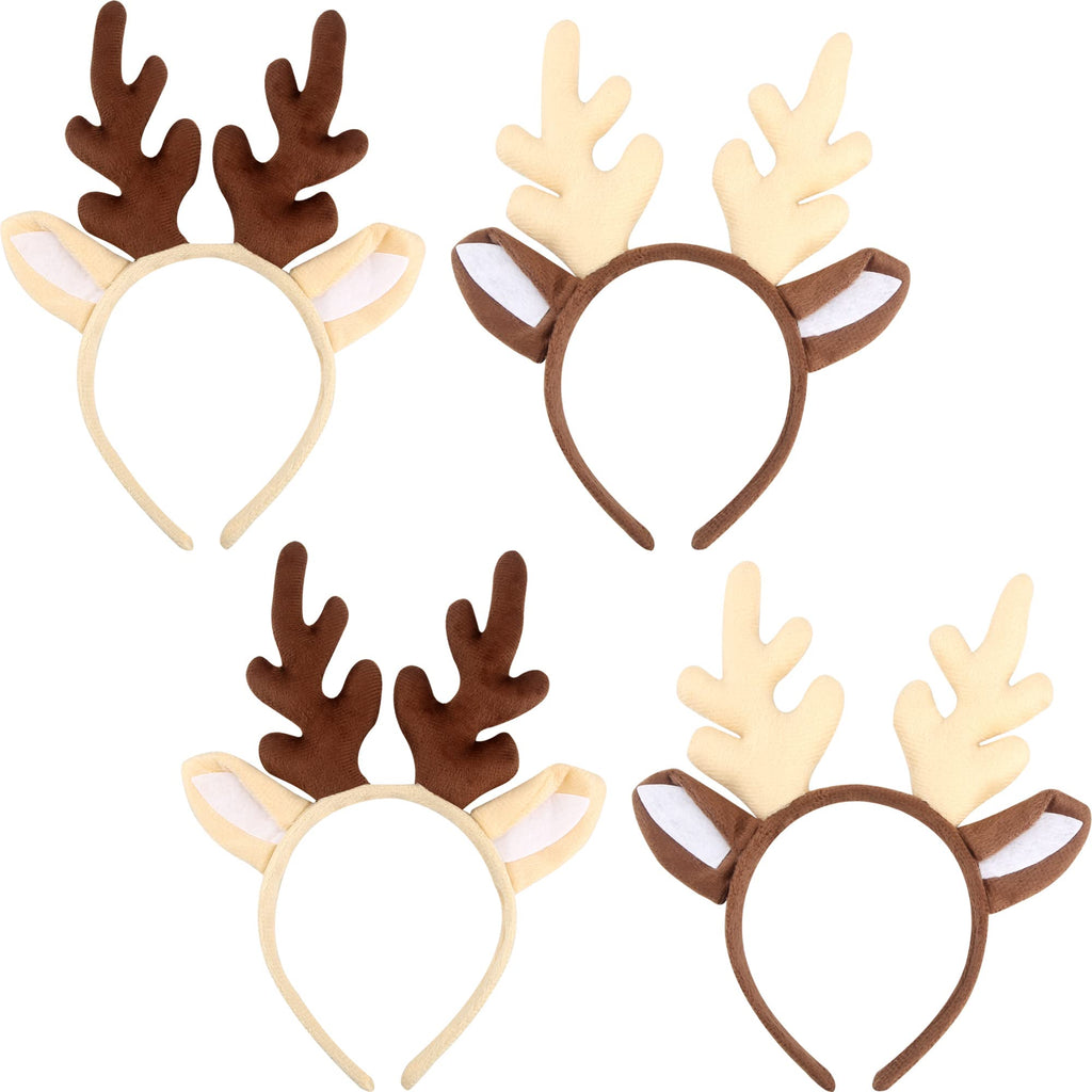 Cotiny 4 Pack Christmas Reindeer Antler Headbands Deer Hoop Headwear for Kids Adults Christmas Costume Holiday Party Favors
