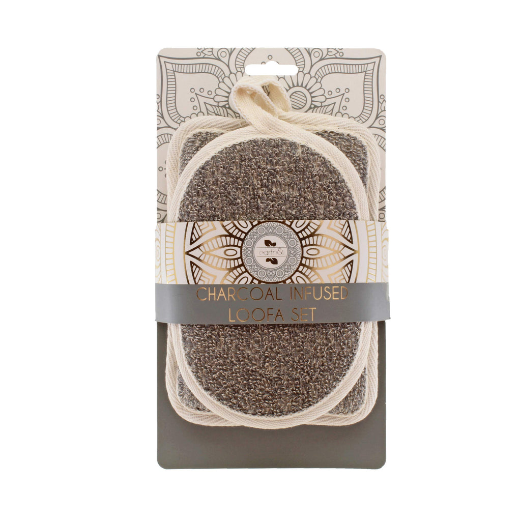 Earth & I Charcoal Infused Loofah Set, Exfoliating Sponge for Deep Cleaning the Skin, 2-Pack