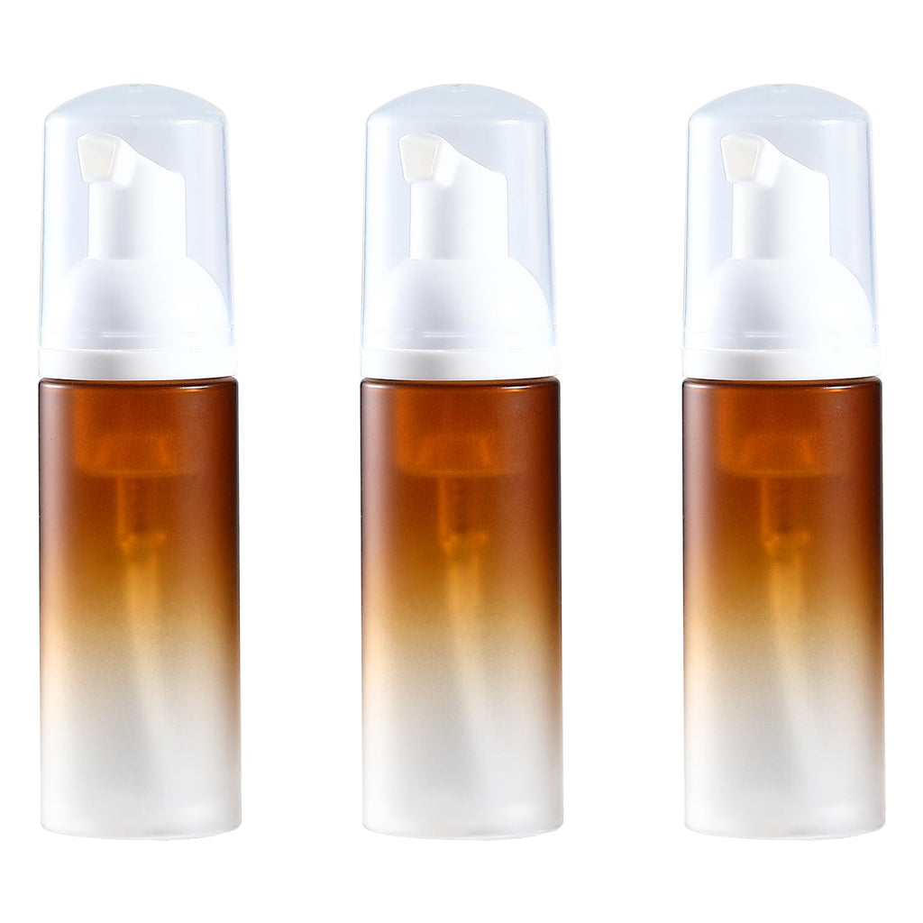EGALLOP Empty 2 oz. Foam Pump Bottles (3 pcs.) Travel Foam Soap Dispenser for Hand Soap, Eyelash Shampoo Cleaner (Gradient Brown Bottle with White Pump and Clear Lid)