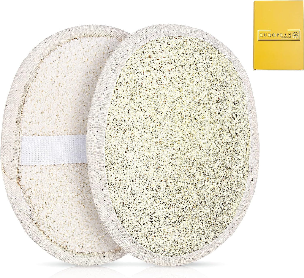 EUROPEAN M6 Natural Loofah Sponge – Premium Egyptian Luffa for Deep Cleansing & Gentle Exfoliation | Ideal for Shower & Bath | Durable & Skin-Friendly Scrubber (2 Pack)