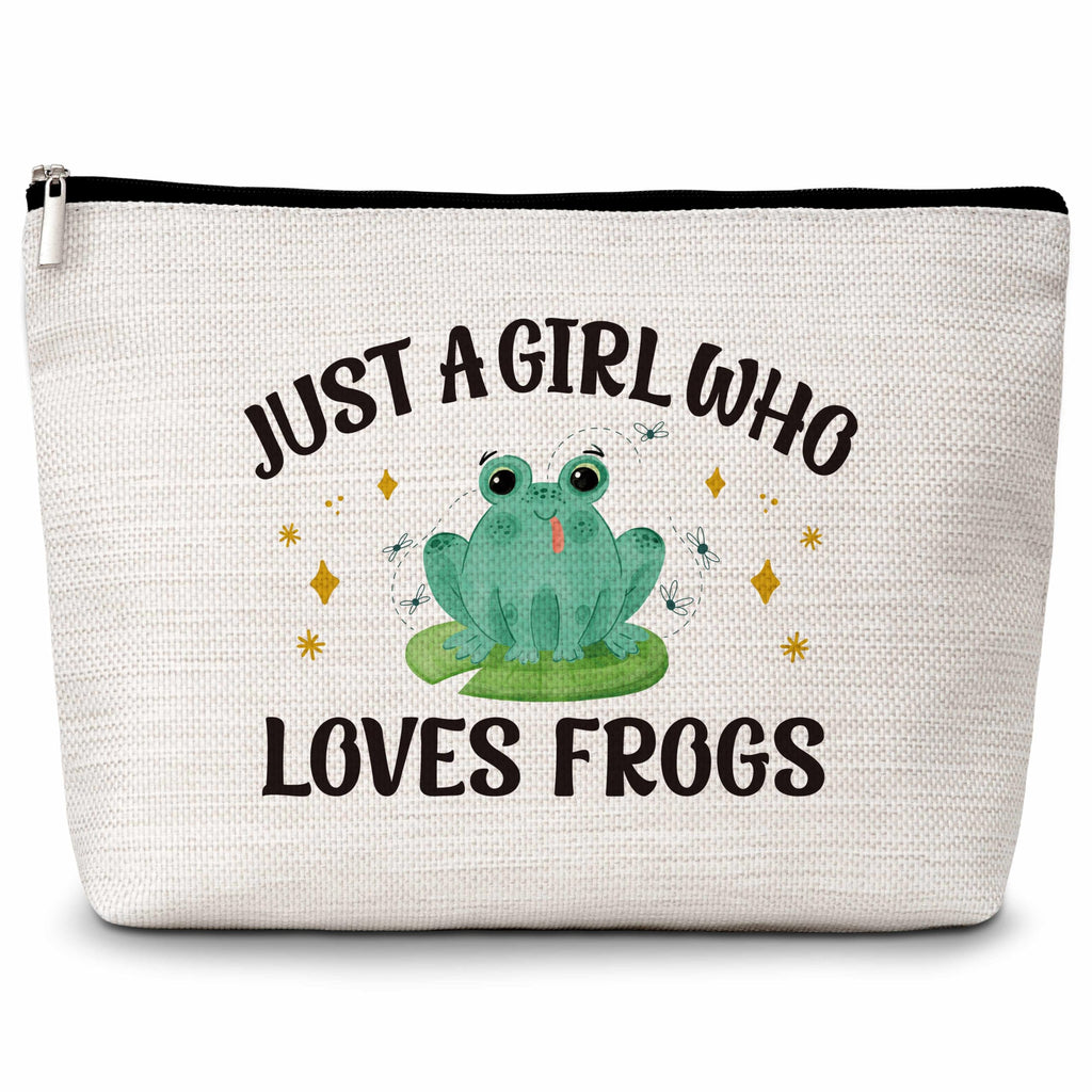 Eyouyeqi Frog Gifts Makeup Bag, Just A Girl Who Loves Frogs Cosmetic Bags, Funny Frog Makeup Zipper Pouch Bag, Frog Lover Inspired Gift, Birthday Gift For Women Girls, 25, White