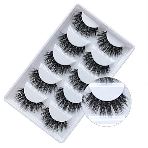 False Eyelashes, 3D Faux Mink Fake Eyelashes Handmade Dramatic Thick Crossed Cluster False Eyelashes Black Nature Fluffy Long Soft Reusable(5 Pairs)