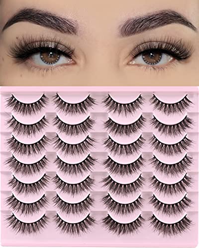 FARRED Lashes Natural Look Short Cat Eye Natural Lashes Fluffy Wispy False Eyelashes 14 Pairs Faux Mink Strip Eye Lashes Pack for Daily Makeup (F2 | 7-14mm)