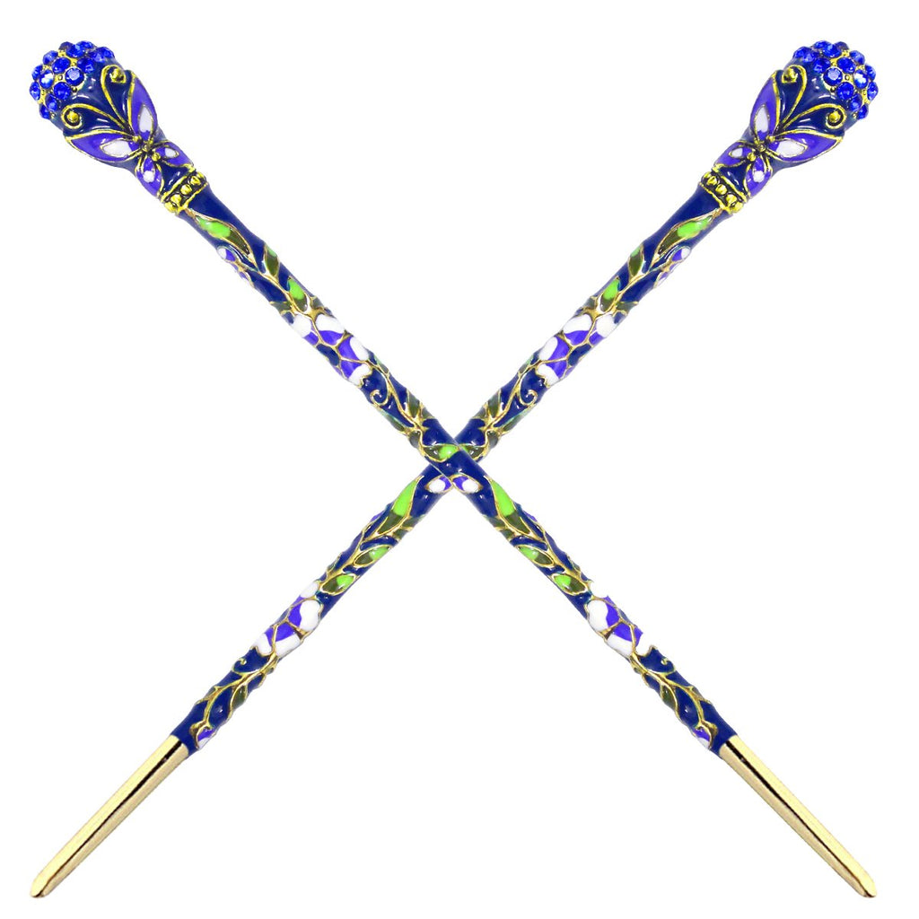 Fashion & Lifestyle 2 Count Hair Decor Chinese Traditional Style Hair Sticks Shawl Pins Picks Pics Forks for Women Girls Hair Updo Making Accessory 6" with Butterfly, Blue