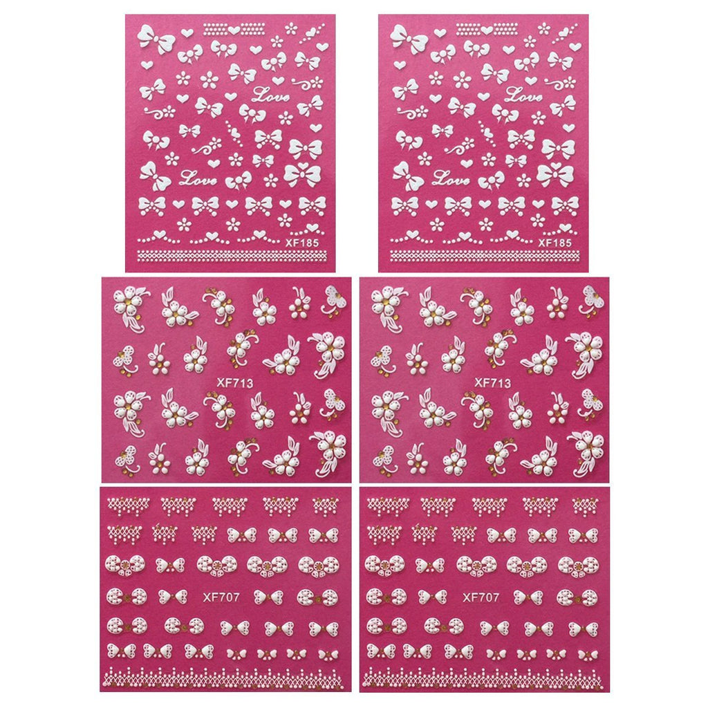 Fingernail Stickers Nail Art Nail Stickers Self-Adhesive Nail Stickers 3D Nail Decals - Bows, Hearts and Flowers (3 Designs/6 Sheets)