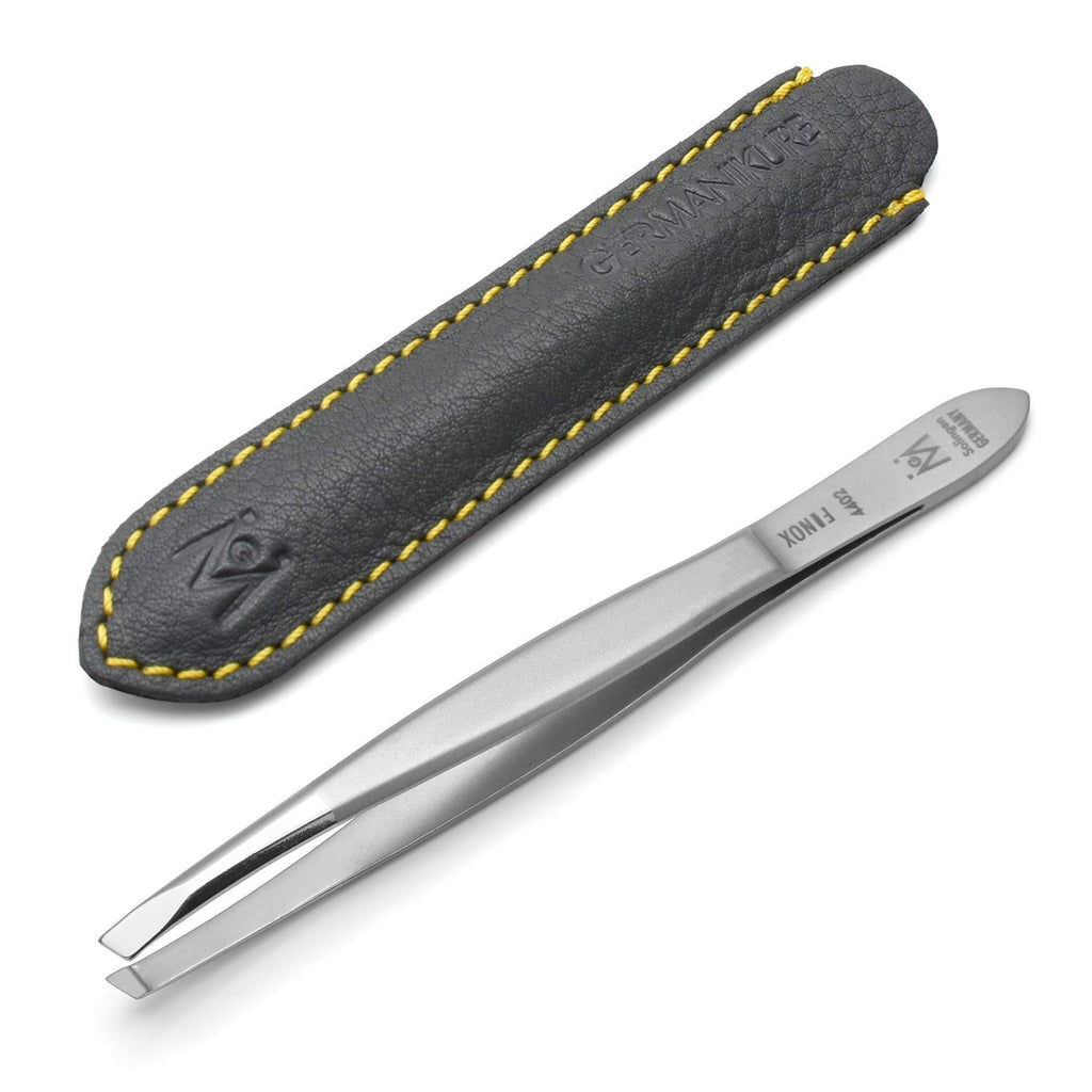 FINOX matte finish stainless steel slanted tweezers, 9cm. Made in Solingen