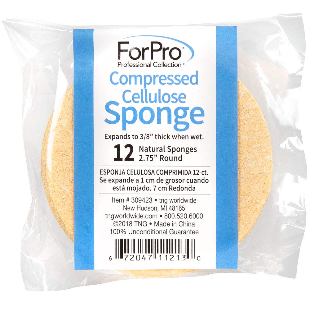 ForPro Compressed Cellulose Sponge - Round Face and Body Sponge - Natural Yellow - 2.75’’ - 12-Count
