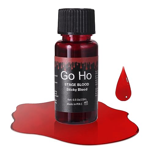 Go Ho Halloween Fake Blood Washable(0.5 oz),Edible Fake Blood Realistic Effect Sticky Blood Makeup for Eyes Drips Teeth Mouth Nose Bleeds,For Halloween Cosplay SFX Zombie Vampire Special Effects Makeup,Bright
