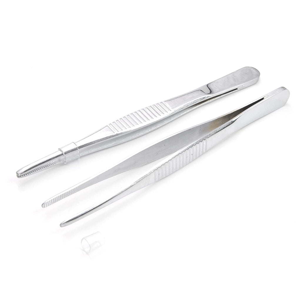 Hegebeck 304 Stainless Steel Tweezers Straight Tweezer Multi Purpose Tweezers Flat Round Tip for Plants, Facial Ingrown Hairs Splinter Remover Daily Beauty Tool with Round Tip 125mm 2pcs