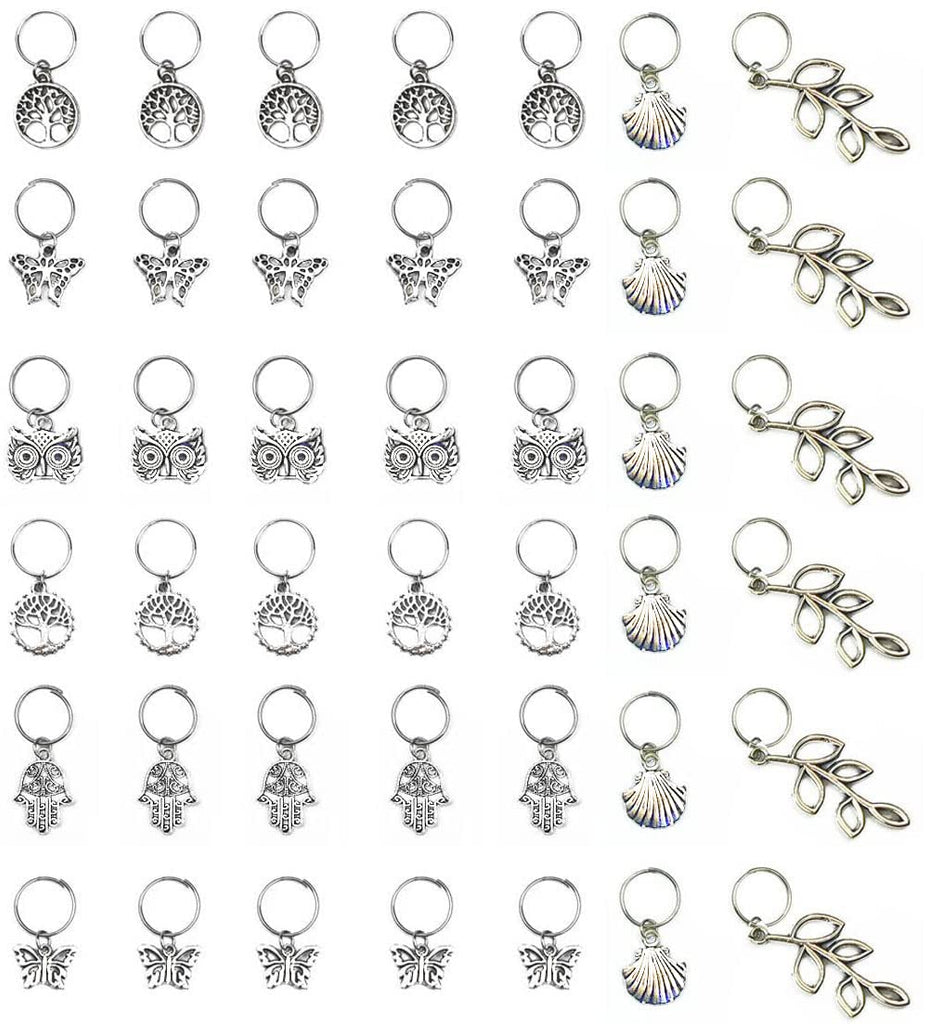 Hyamass 40pcs Antique Silver Ring Owl Butterfly Leaves Life of Tree Hand Scallop Charms Pendant Braid Hair Clip Headband Hair Accessories