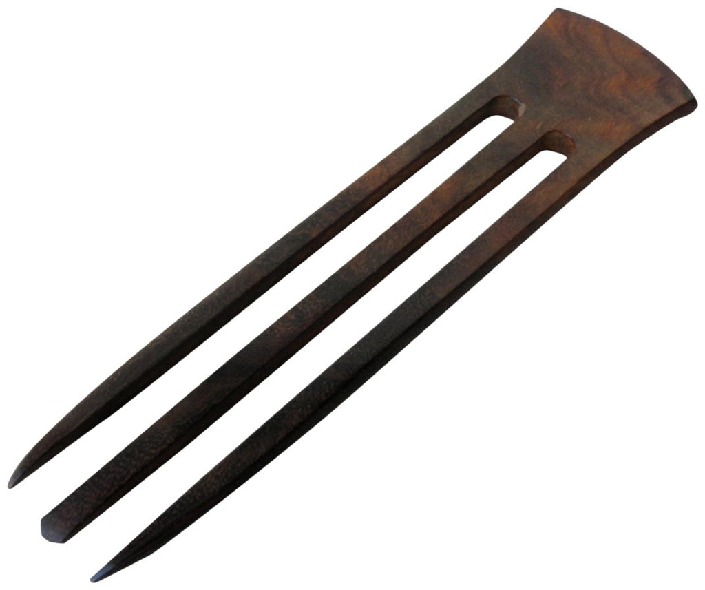 JWL (1) Rosewood Three (3) Prong 6 Inch Straight Hair Stick Pick Pic Pin Fork - Hawaiian Style