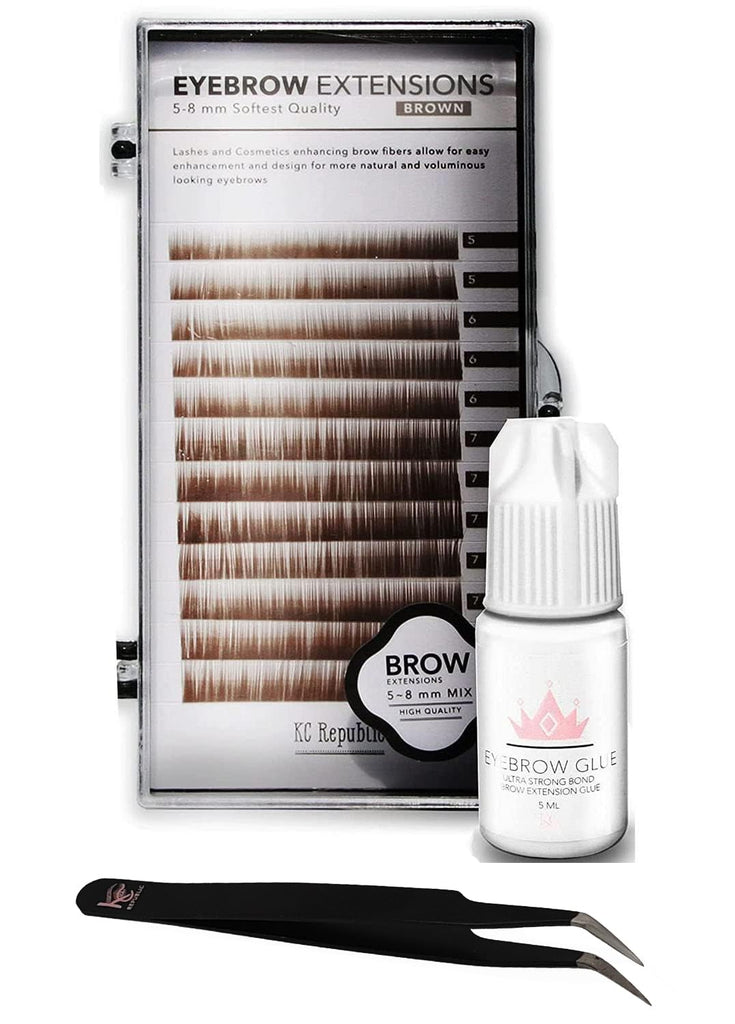 KC Republic Brown: Eyebrow Extensions With Eyebrow Extension Glue Clear With Mink Eyebrows In Brown | Comes On Mixed Length