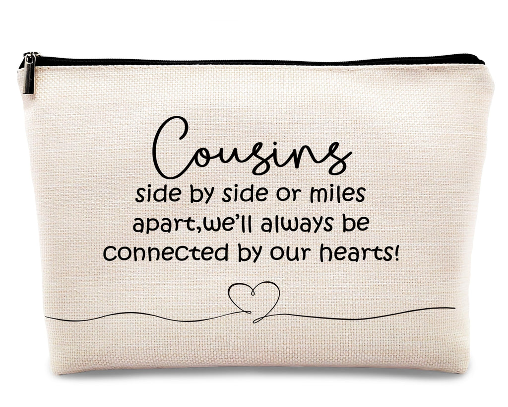 kdqua Cousins Gifts Makeup Bag, Cousin Gifts for Women, Unique Birthday Gifts for Cousin, Long Distance Relationship Cousin Appreciation Gift Linen Cosmetic Bag Zipper Pouch Travel Toiletry Bag