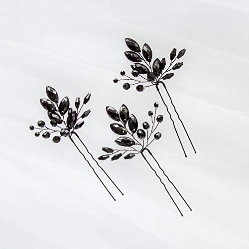 Kercisbeauty Wedding Black Crystal Hair Pins for Bride Bridal Bridesmaid Headpiece Prom Hair Accessory 3pcs