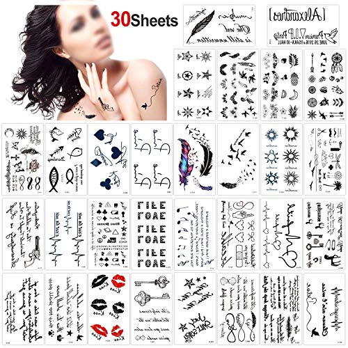 Konsait Temporary Tattoos for Adult Men Women Kids(30 Sheets), Waterproof Temporary Tattoo Fake Tattoos Body Art Sticker Hand Neck Wrist Cover Up Set