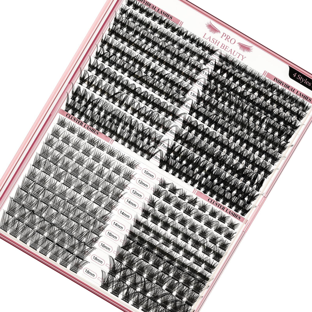 PRO 540 Pcs Cluster Lashes 4 Styles Lash Clusters DIY Eyelash Extension 30D 40D Individual Lashes Thin Band Easy to Apply at home Lashes( 4 Styles,10-18mix)