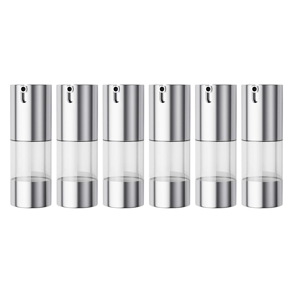 LONGWAY 15ml Airless Pump Bottle Silver Airless Cosmetic Cream Pump Bottle Travel Size Dispenser Refillable Containers?0.5oz/15ml?Pack of 6